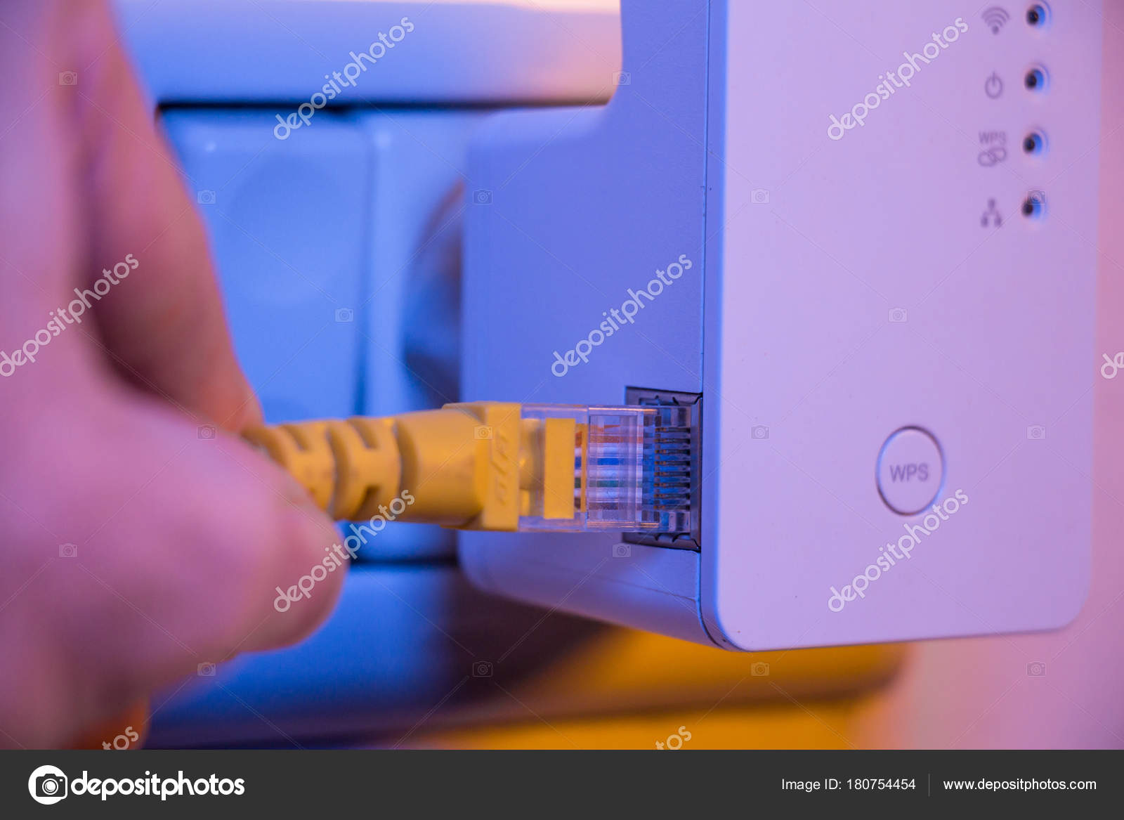 Man Insert Ethernet Cable Into Wifi Extender Device Which Is In Stock Photo C Wavemoviesmw 180754454